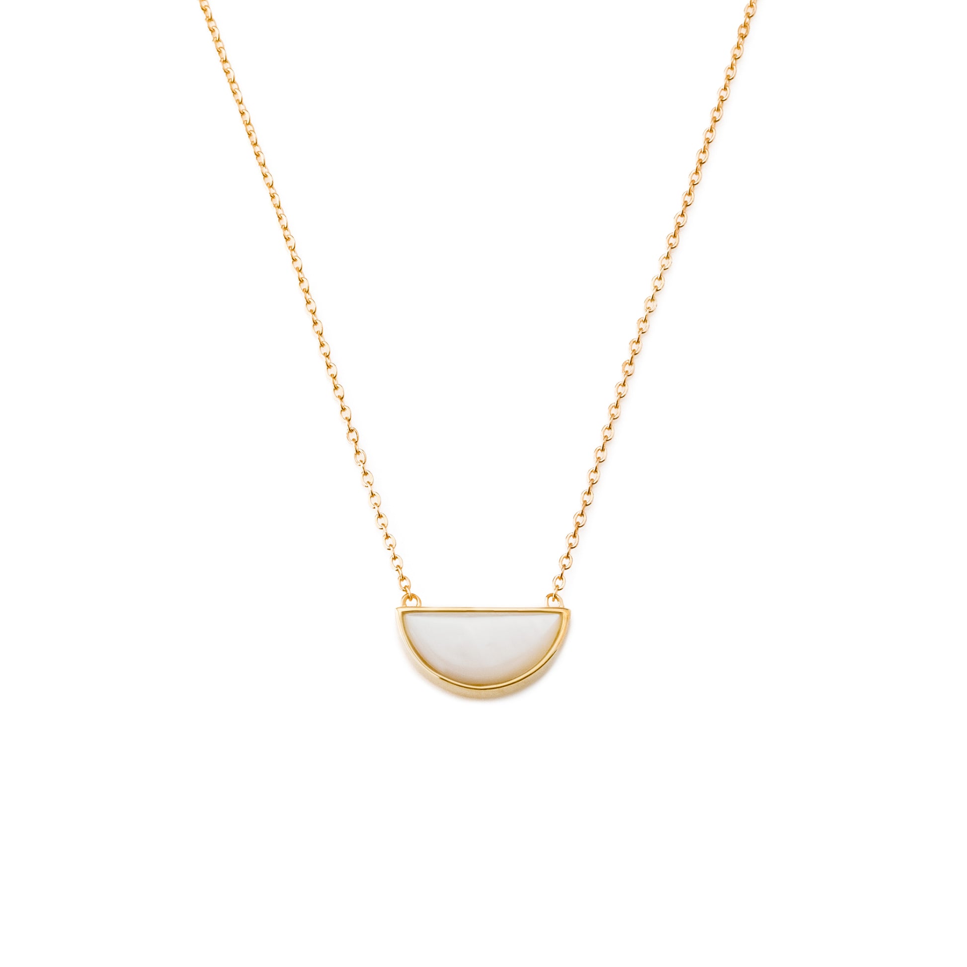 A petite half-moon pendant set with a bold natural stone and finished in 18k gold vermeil. Minimalist yet eye-catching, it’s an easy statement on its own and a perfect addition to your layered necklace lineup.