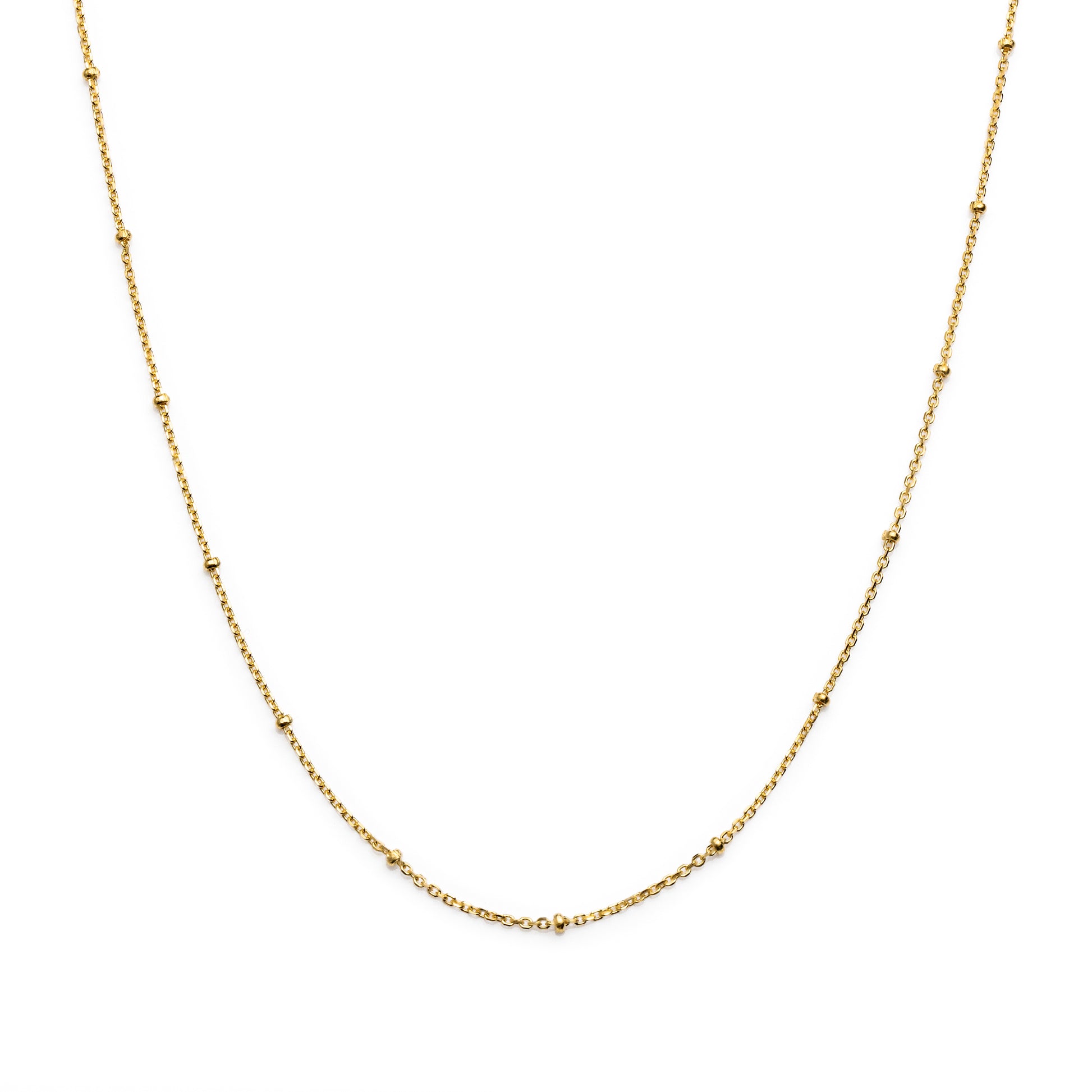 A delicate essential for everyday layering. Our Satellite Chain features a fine cable dotted with tiny, fixed metal spheres that catch the light beautifully. Wear it solo for a clean, minimalist look or pair it with your favorite gemstone pendants—the ultimate “works-with-everything” piece.