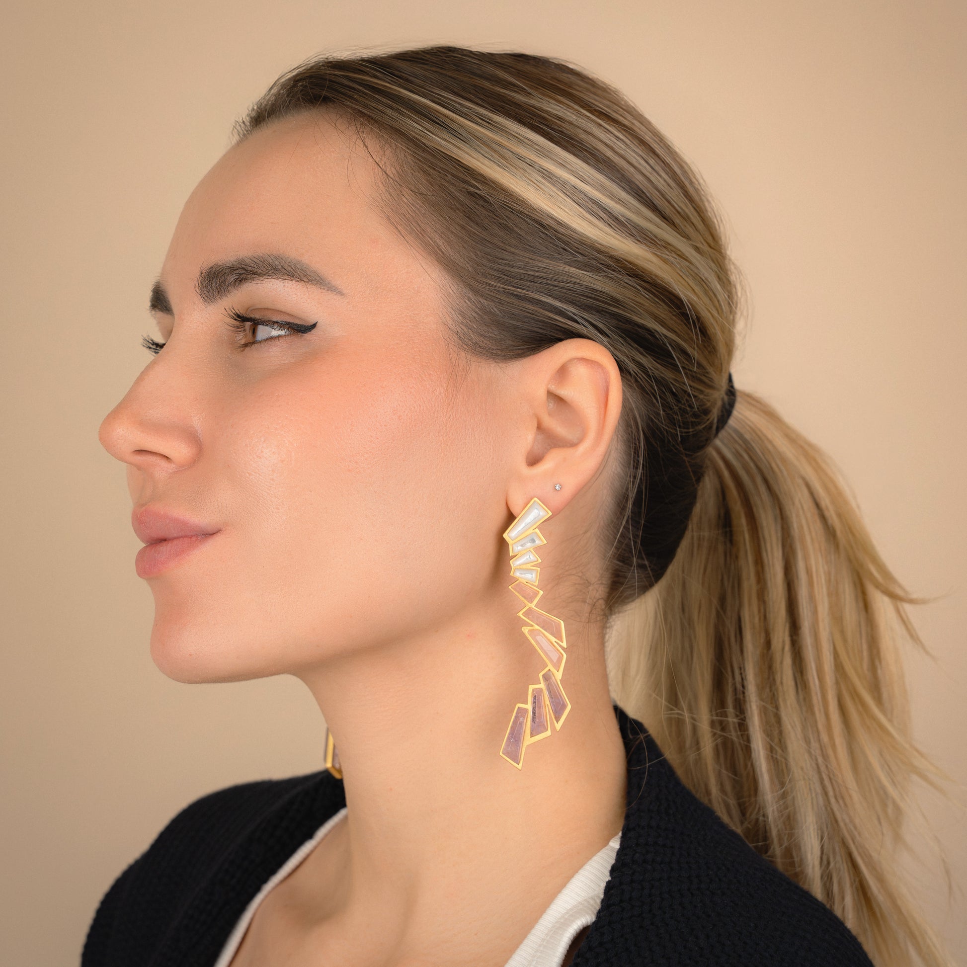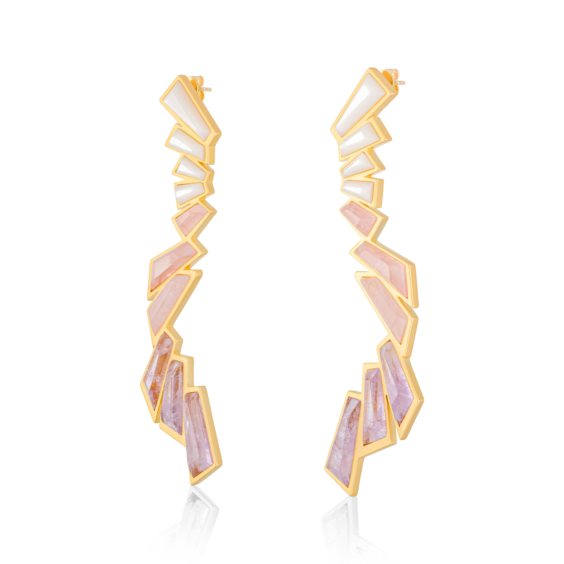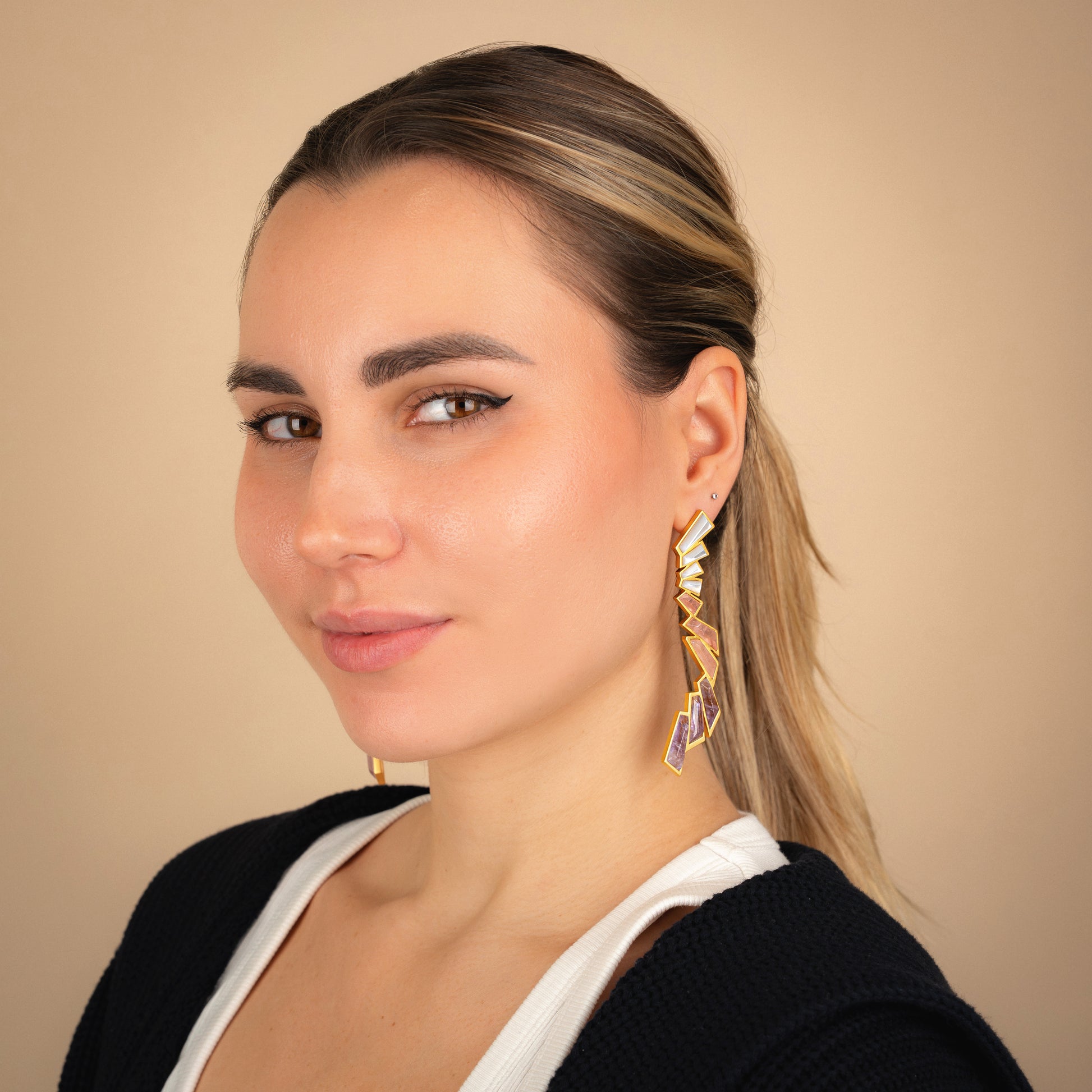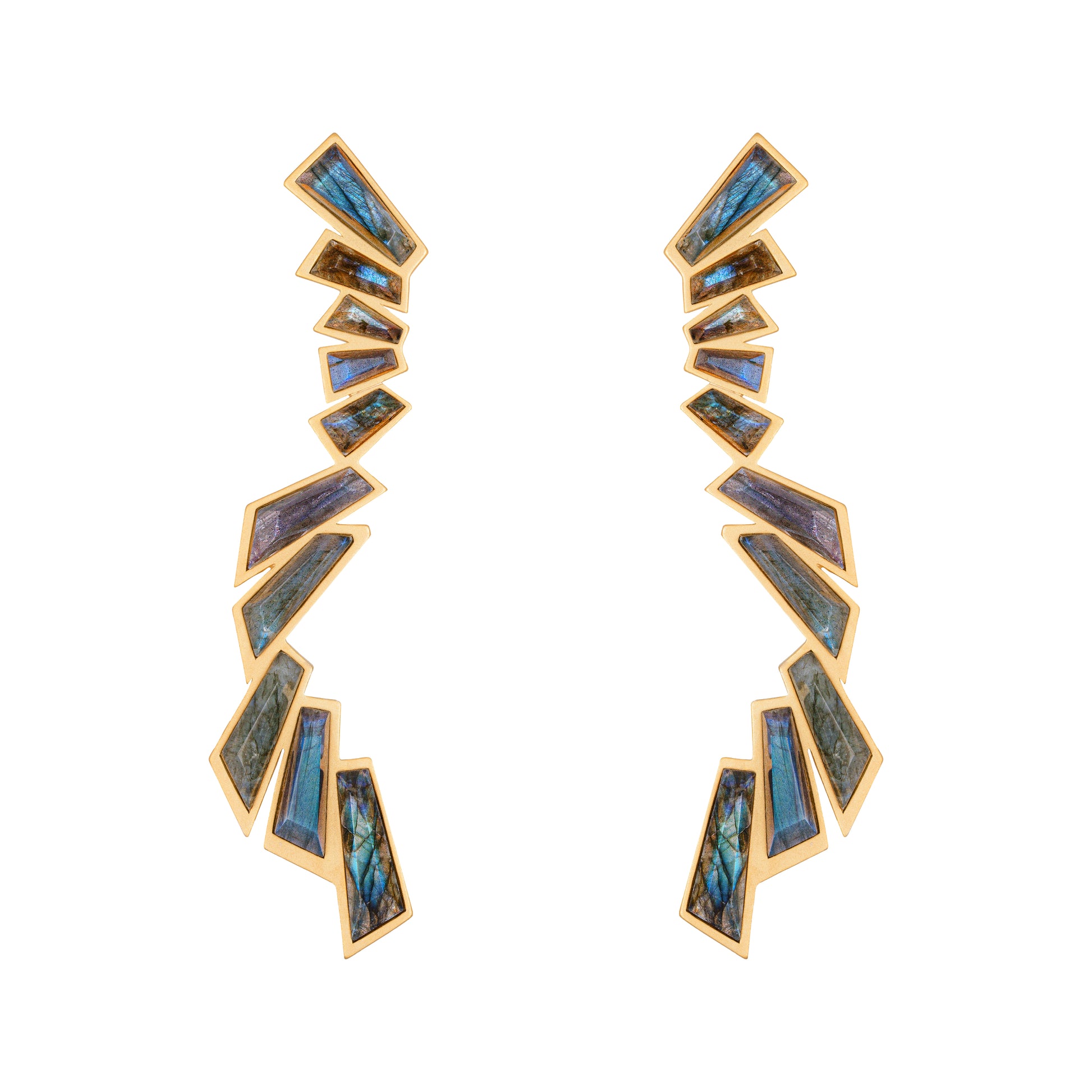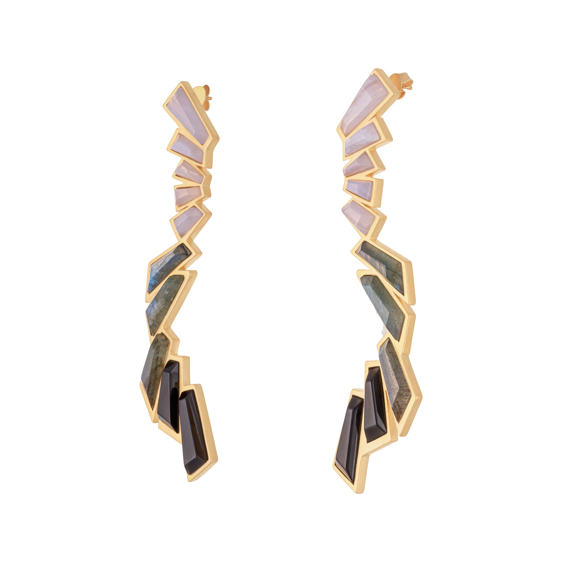 A nod to the decadence of the Roaring Twenties with a distinctly modern twist. The Gatsby Earrings fuse sculptural design with the raw allure of hand-cut semiprecious gemstones, set in 18k gold-plated or platinum-plated sterling silver. Bold, luminous, and unapologetically glamorous—they’re made for nights that don’t end early and outfits that command attention. Effortlessly transforms a minimalist look into a statement moment.
