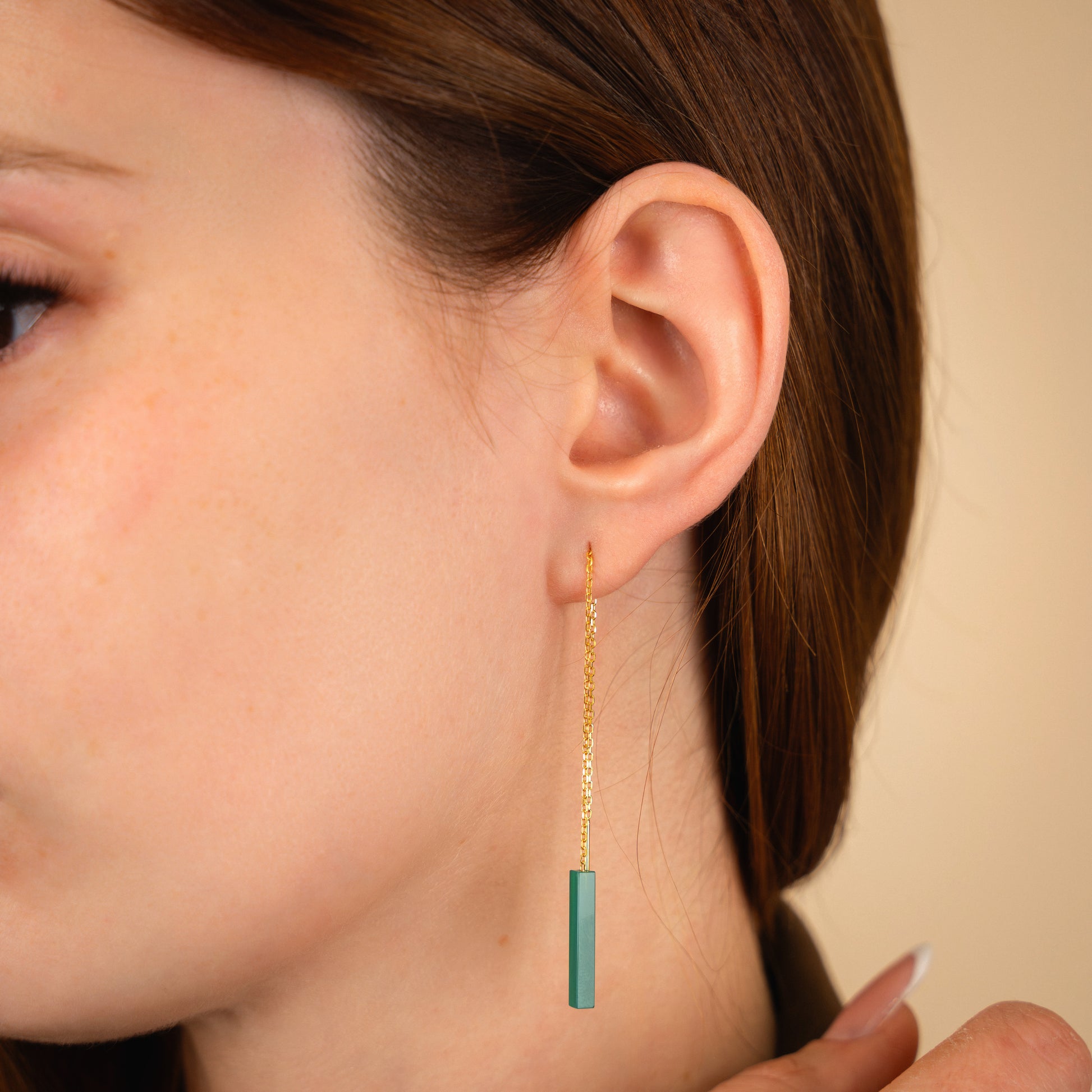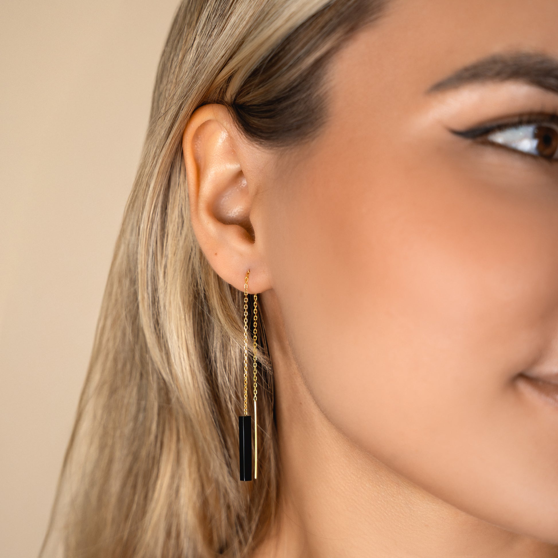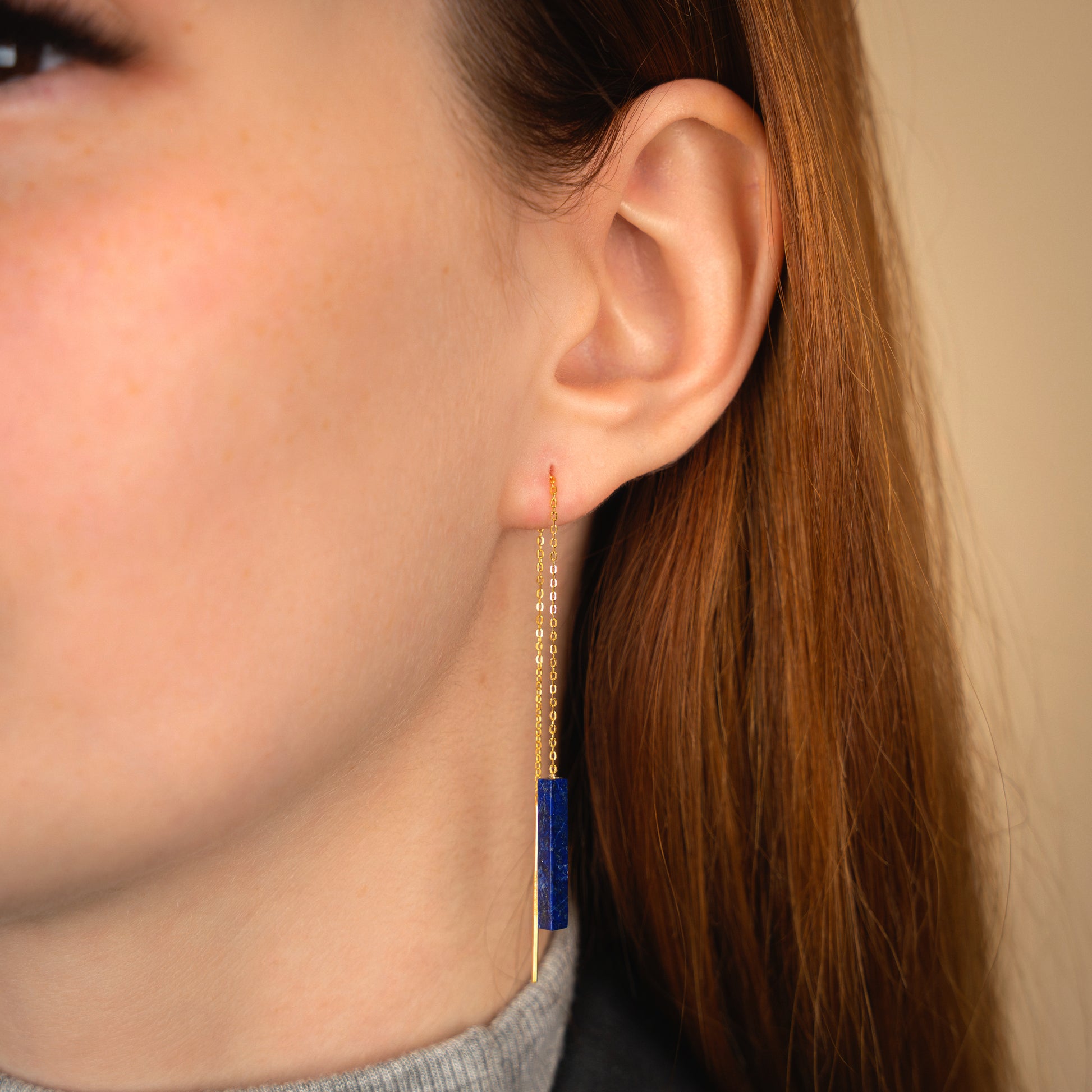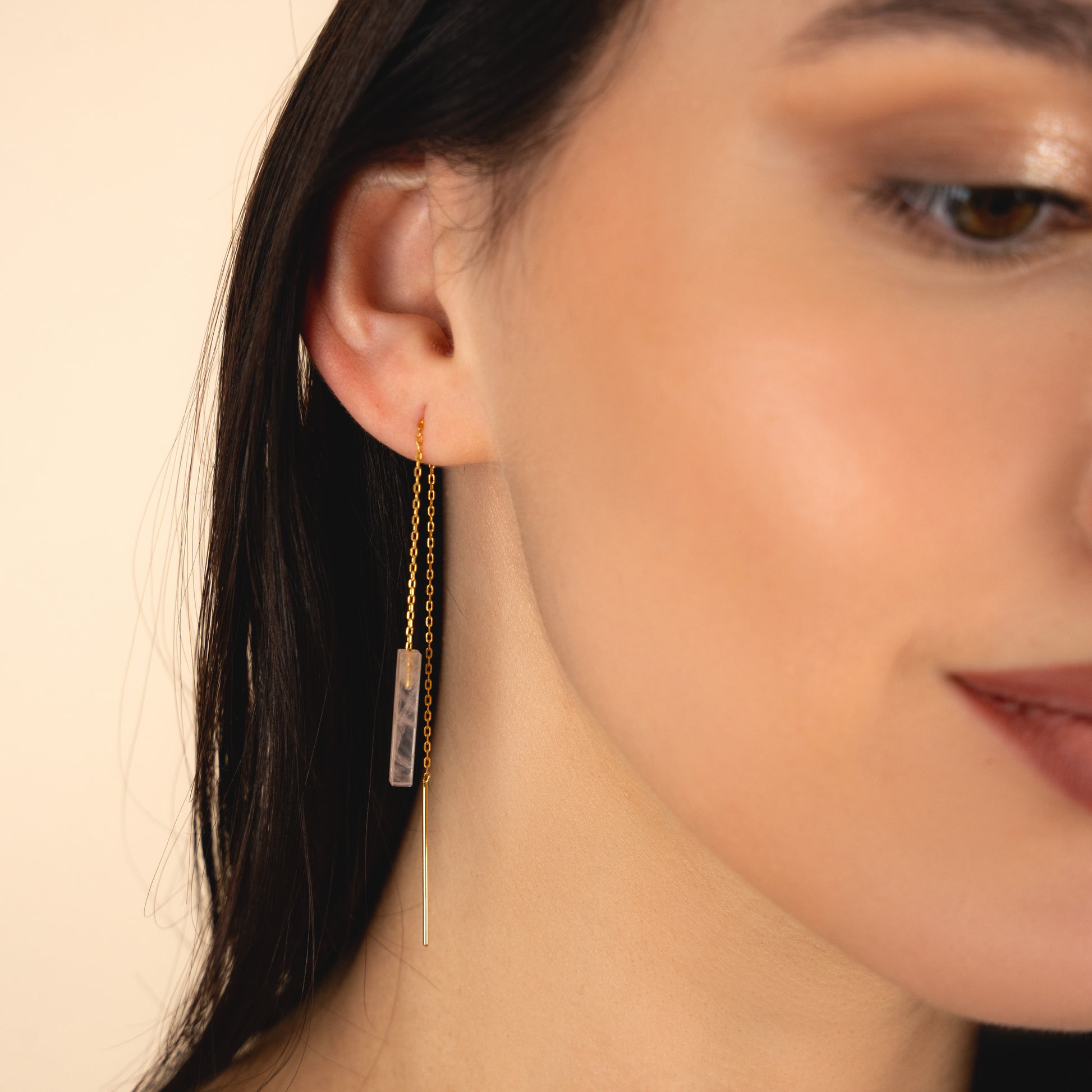 Sleek, lightweight threaders with a minimalist gemstone bar that glides through the ear for a clean, modern line of color. Finished with an 18k gold vermeil chain and earwires, they’re comfy enough for all-day wear and perfect for mixing with hoops or studs in multiple piercings.