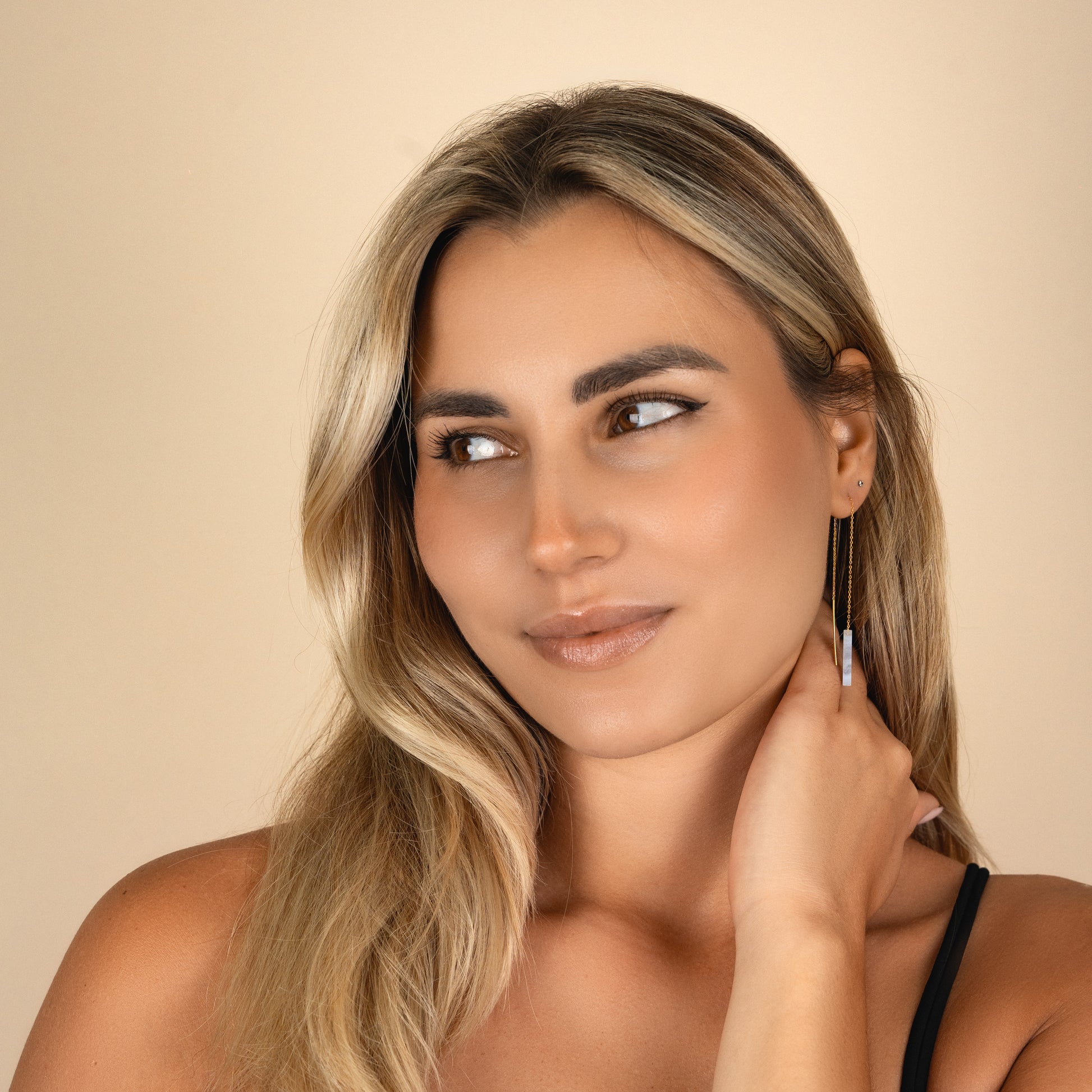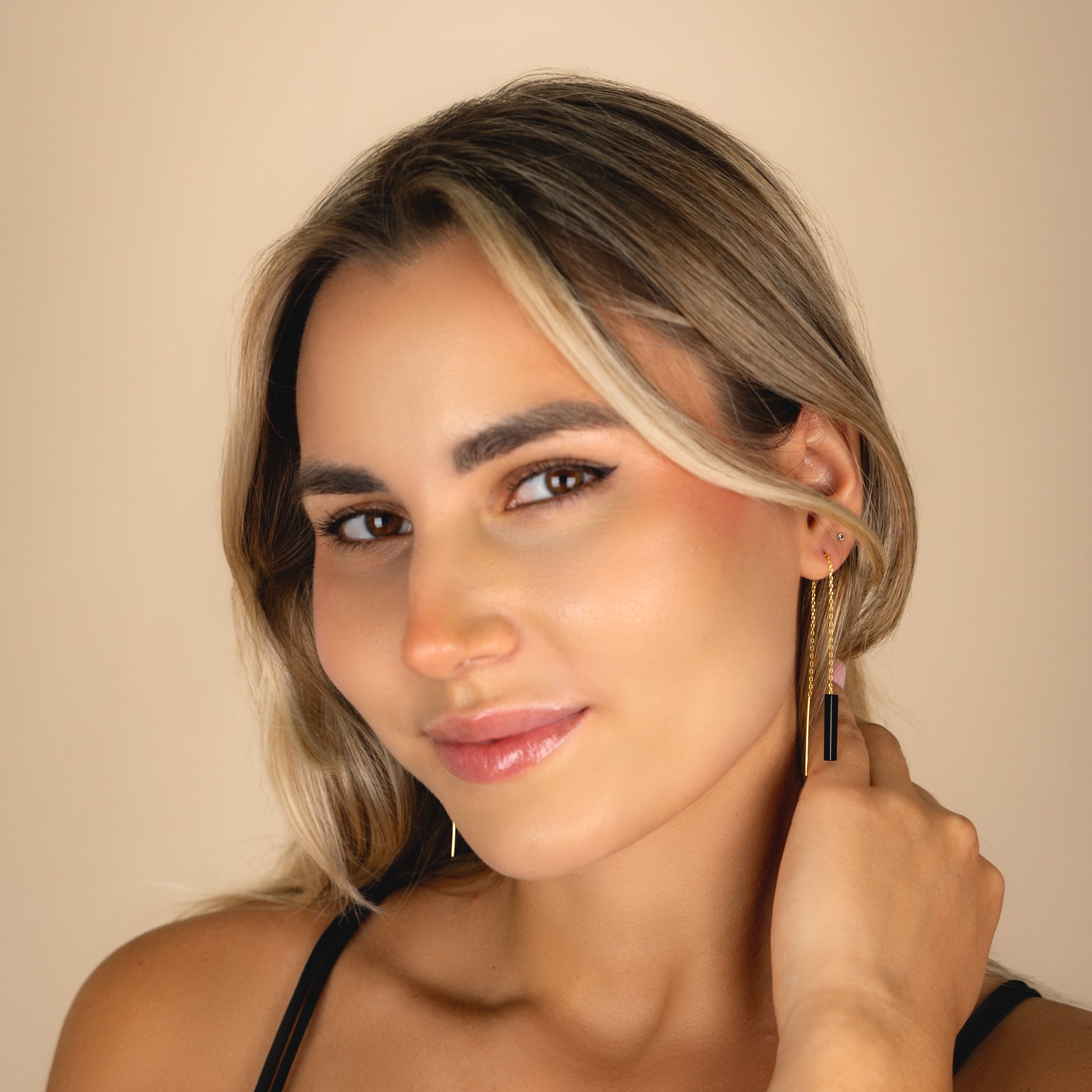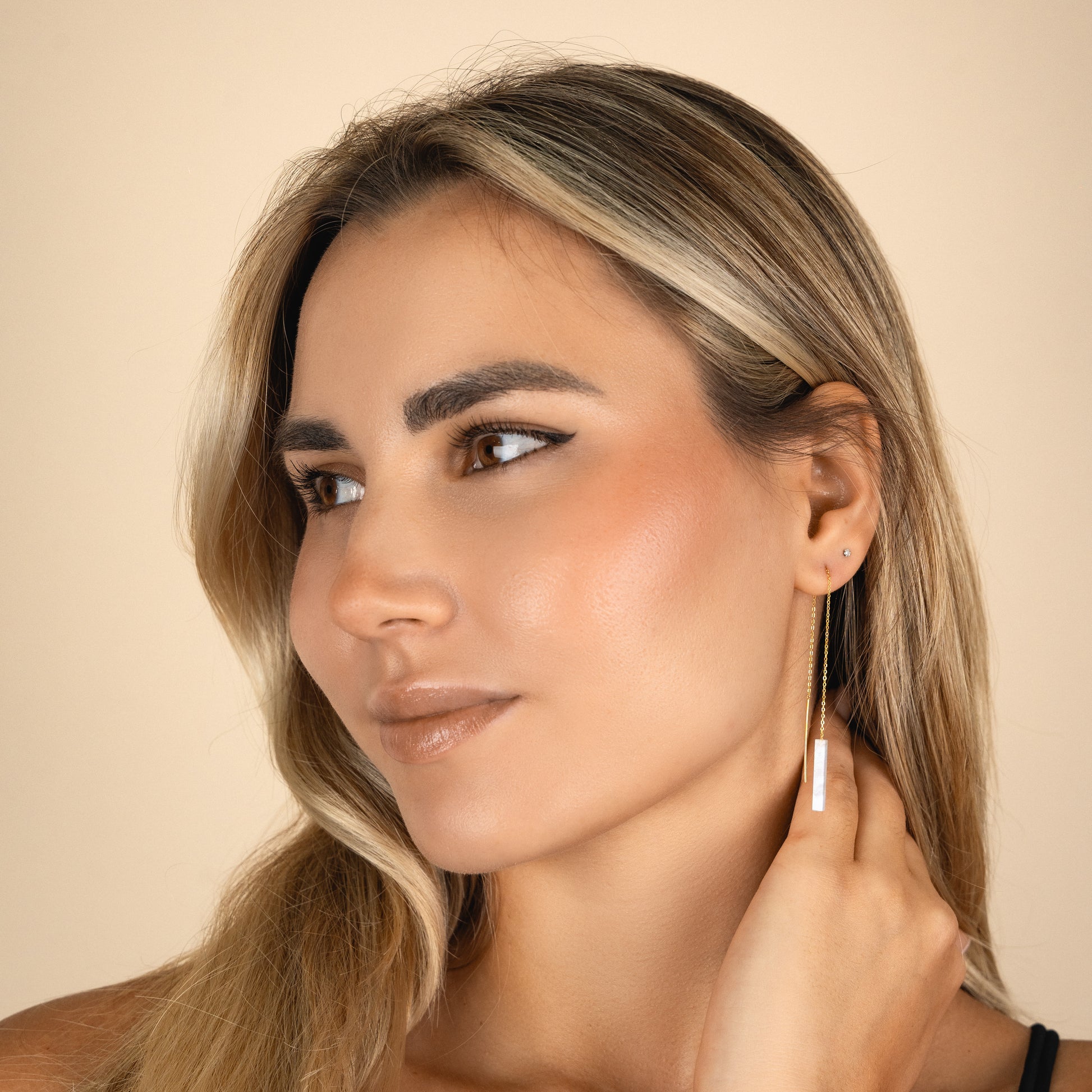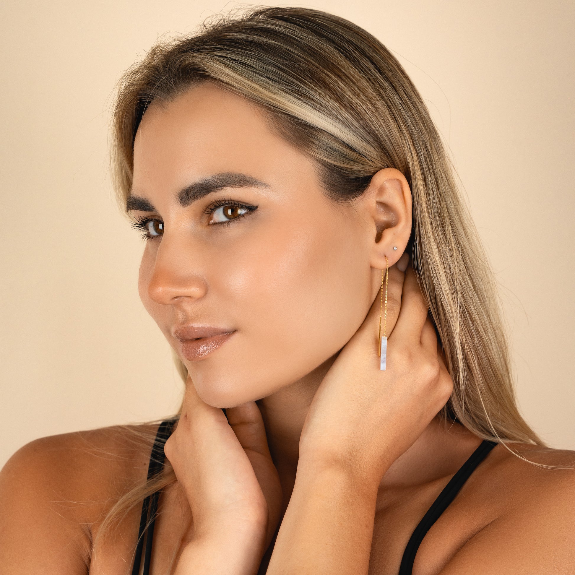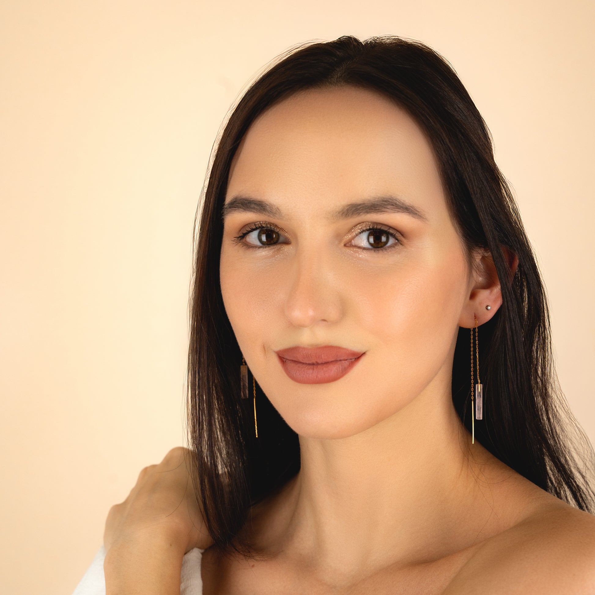 Sleek, lightweight threaders with a minimalist gemstone bar that glides through the ear for a clean, modern line of color. Finished with an 18k gold vermeil chain and earwires, they’re comfy enough for all-day wear and perfect for mixing with hoops or studs in multiple piercings.