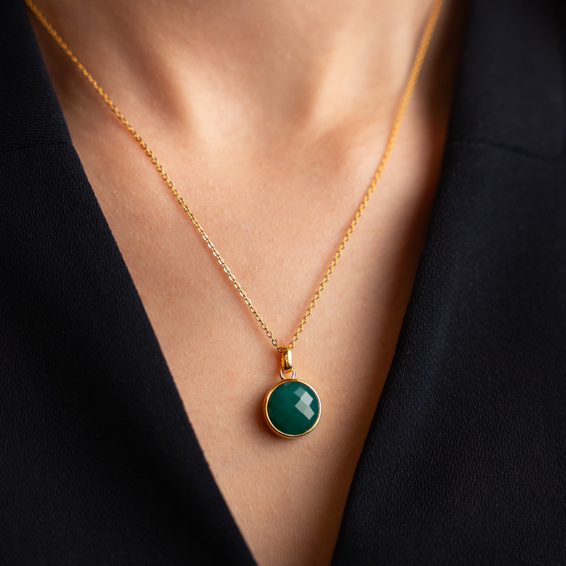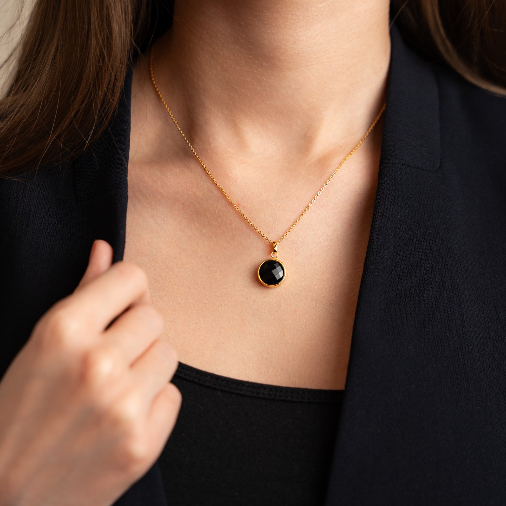 A modern take on the classic coin pendant: a faceted natural gemstone set in a sleek round bezel and suspended from a delicate chain. Crafted in 18k gold vermeil over sterling silver, this minimalist piece is an effortless everyday necklace and a thoughtful anniversary gift. Available in Lapis Lazuli, Green Agate, Obsidian, Smoky Quartz, and Blue Lace Agate.